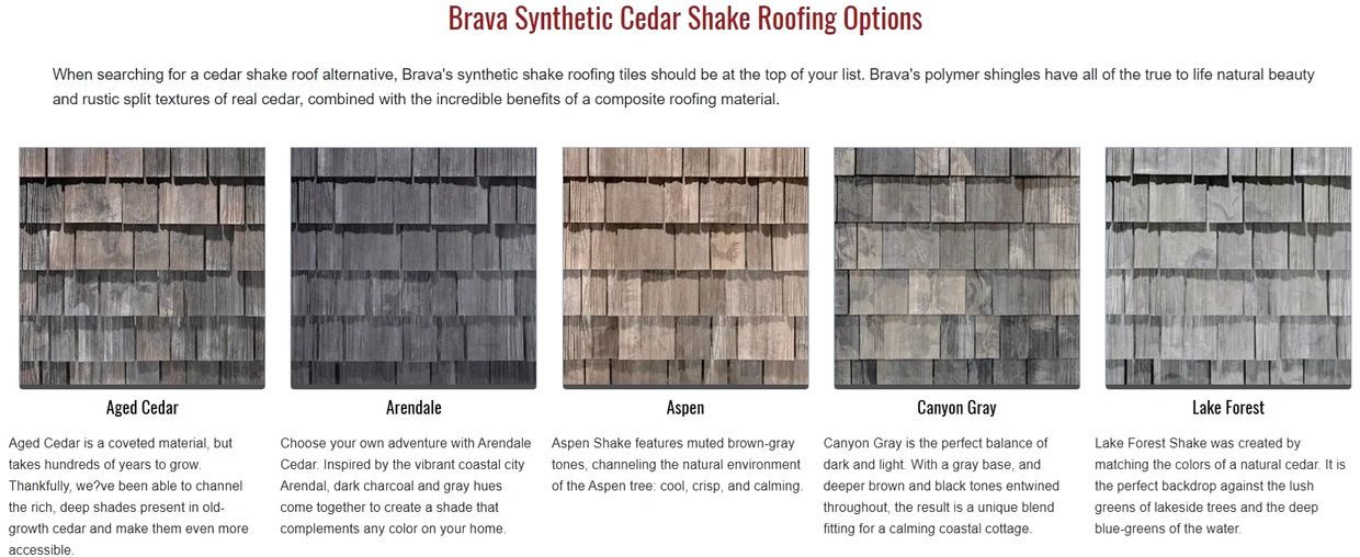 Brava Shake Roofing is a premium synthetic roofing product designed to replicate the look of natural cedar shake shingles. Made from recycled materials, it offers the charm of traditional wood shakes with superior durability and performance.